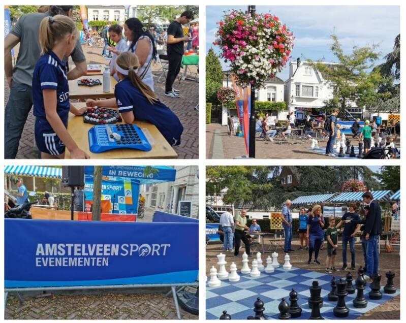 De opening was op zaterdag 16 september a.s. in het Oude Dorp en stond in het licht van de Denksport. Wethouder Sport Herbert Raat verrichte de openingszet in het groot schaakbord en opende daarmee de Nationale Sportweek in Amstelveen. Naast schaken kon je ook bridgen of een van de vele denkspellen, spelen. Een leuke en leerzame middag voor iedereen van alle leeftijden.